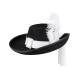 Chapeau de mousquetaire noir avec à la base un ruban ainsi qu'une plume
