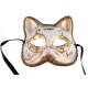 Masque à tête de chat blanc avec arabesques noir et or et des bordures dorées.