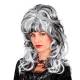 Perruque noire et blanche, mi-longue, légèrement bouclée